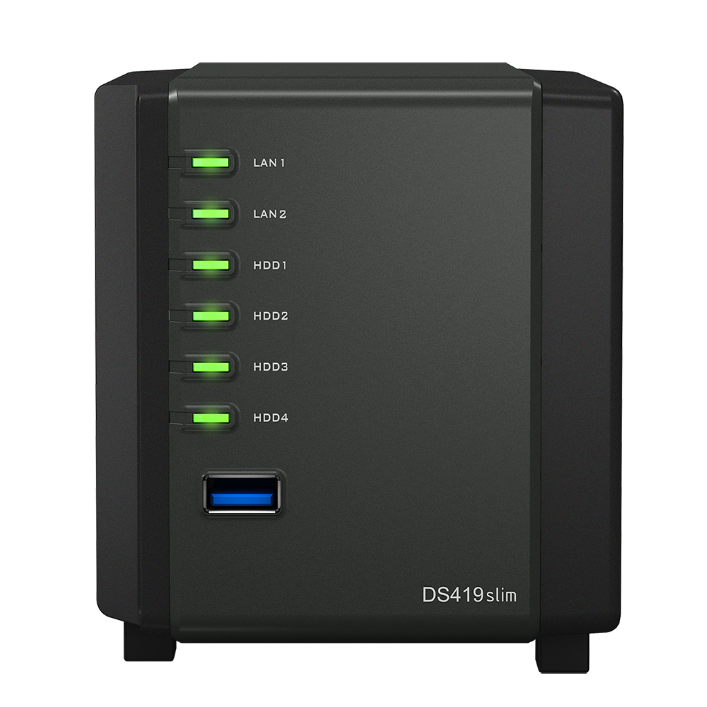 DS419slim 是一個立方體機(jī)身的 4 槽式 NAS,讓您能隨時訪問文件,并在進(jìn)行共享的同時,