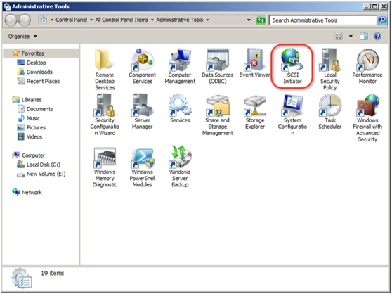 在 Windows 上打開 iSCSI 啟動(dòng)器(在控制面板 > 管理工具中)。