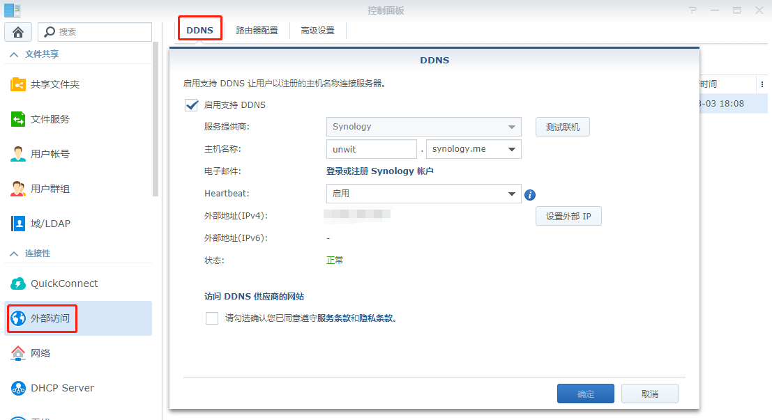 4、如果是動態(tài)的公網(wǎng)IP,群暉提供免費的域名申請,可以通過訪問\\域名來訪問SMB共享。
