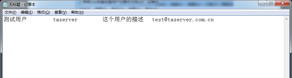 使用記事本打開一個新文件。按照下列順序輸入用戶信息,并以 TAB 鍵分隔: