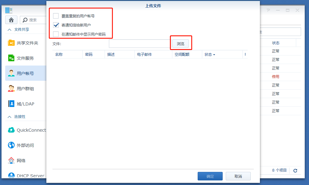注意:不管什么方法批量創(chuàng)建群暉 nas 用戶都需要上傳 UTF-8 編碼的文件