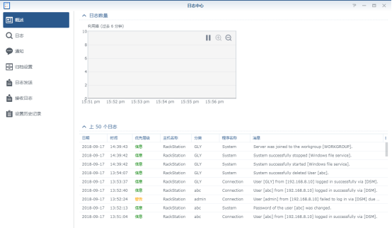 3、打開主菜單中的日志中心:可以看到一些日常的登錄操作